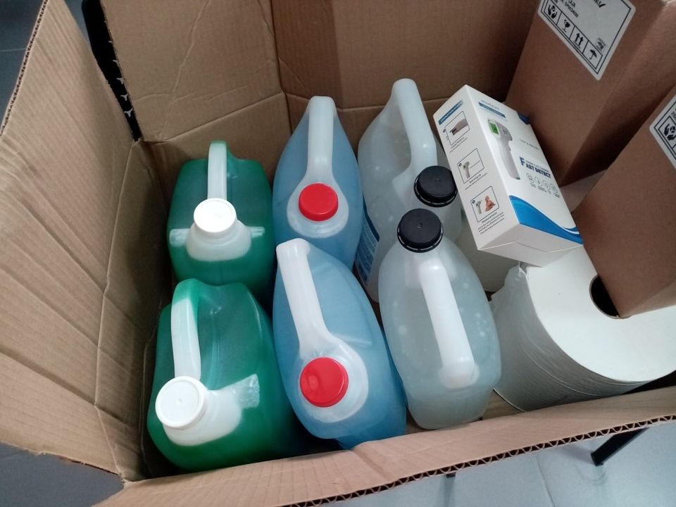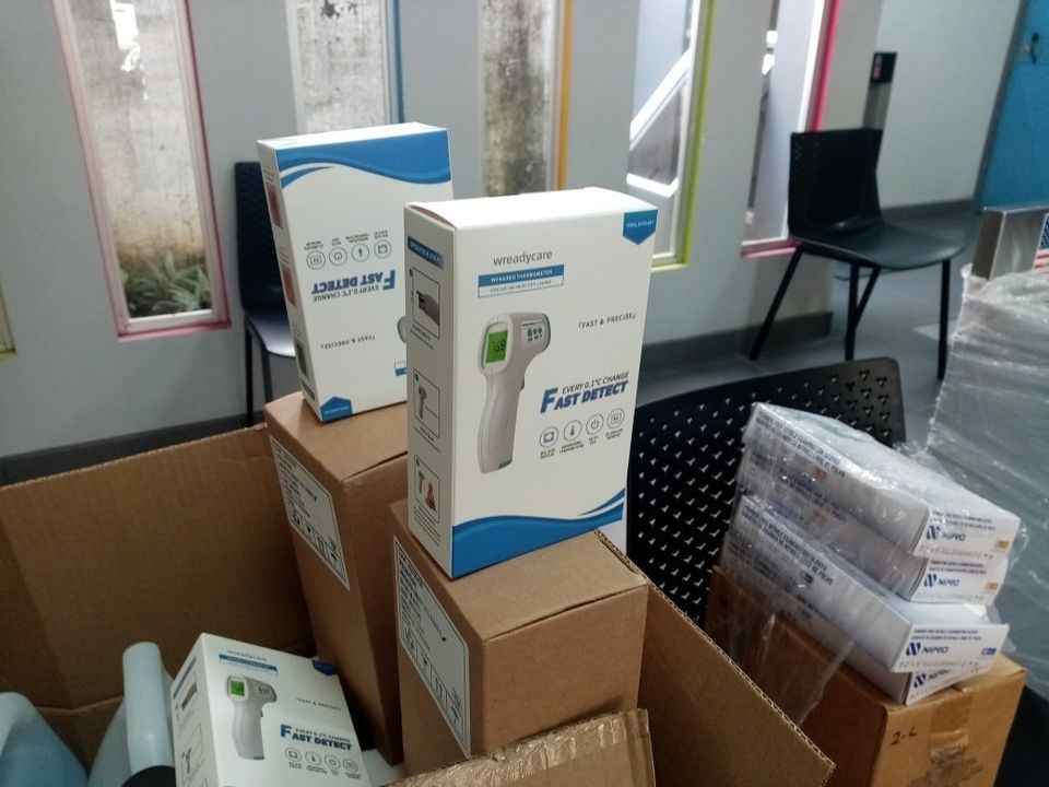 Entre lo donado se encuentra productos de limpieza y medidores de temperatura corporal para poder mejorar el control del acceso de vecinos a realizar sus trámites municipales.