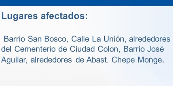 El día de hoy se suspendió el servicio de agua potable de 1pm a 8pm en varios sectores del cantón.