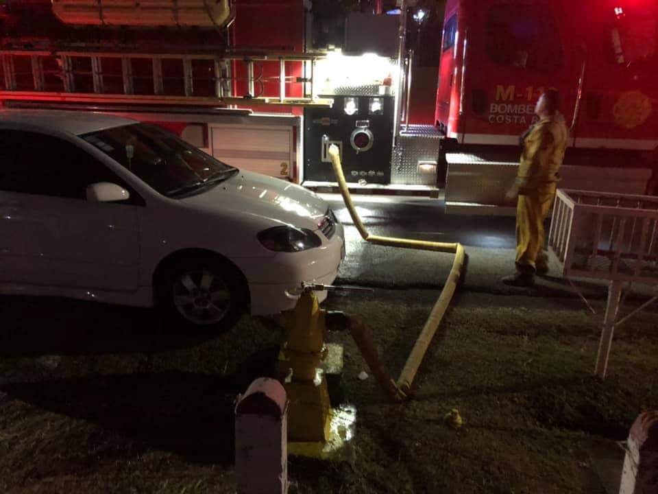 Esta noche en redes sociales se comprobó como la Unidad de Bomberos tuvo que tomar agua de un hidrante en el que se encontraba parqueado pegado un vehículo liviano.