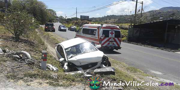 Pasadas las 10:15 am se reportó la colisión de un vehículo liviano contra un objeto fijo en Ciudad Colón.