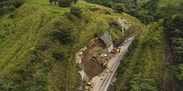 Cuadrillas de Trabajo realizan labores sobre ruta 27, sector Escobal, donde ayer Mundo Villacolón informó sobre el deslizamiento que mantiene cerrado el paso.