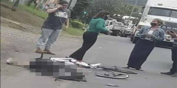 Una mujer de entre los 25 y 30 años perdió la vida en Ciudad Colón pasado el medio dia, las primeras versiones indican que una vagoneta de una empresa de construcción la impactó cuando manejaba su bicicleta  y producto del golpe quedó tendida sobre vía pública.