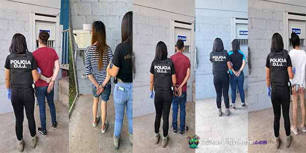Tras identificar a estas personas como sospechosas de conformar esta agrupación delictiva, los agentes del OIJ de Puriscal al ser las 6:00 de esta mañana allanaron dos casas en Santiago de Puriscal y ahí detuvieron a tres de las personas sospechosas, mientras que las otras dos fueron detenidas en vía pública, una en la localidad de San Antonio de Puriscal y la otra en Jaris de Mora.