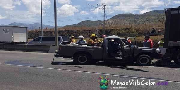 Pasadas las 12:16 pm se presentó una fuerte colisión entre un vehículo liviano y un camión en el kilómetro 15 de ruta 27, salida a Ciudad Colón.
