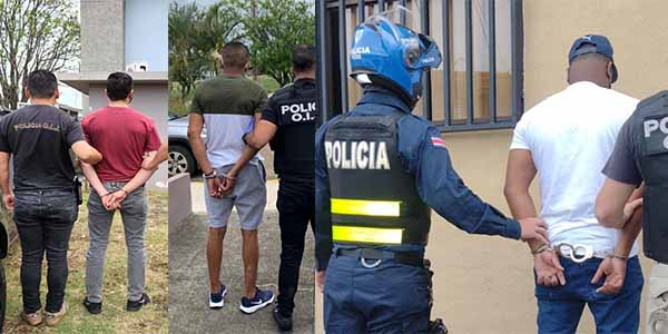 La detención se realizó en la vía pública en diferentes puntos, dos de ellos fueron detenidos en la vía pública en San José, uno en San Juan de Dios de Desamparados y otro en el Cantón de Mora, en el lugar conocido como La Fila, este último era miembro de la Policía Administrativa. Cabe destacar que el día de los hechos fueron detenidos dos hombres en el sitio del suceso.