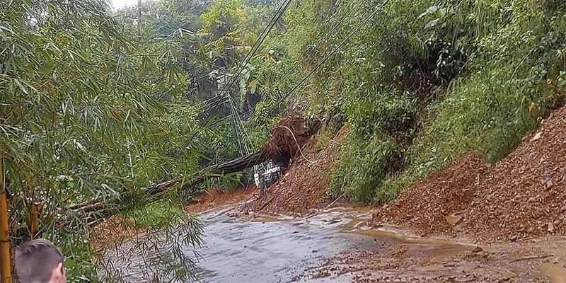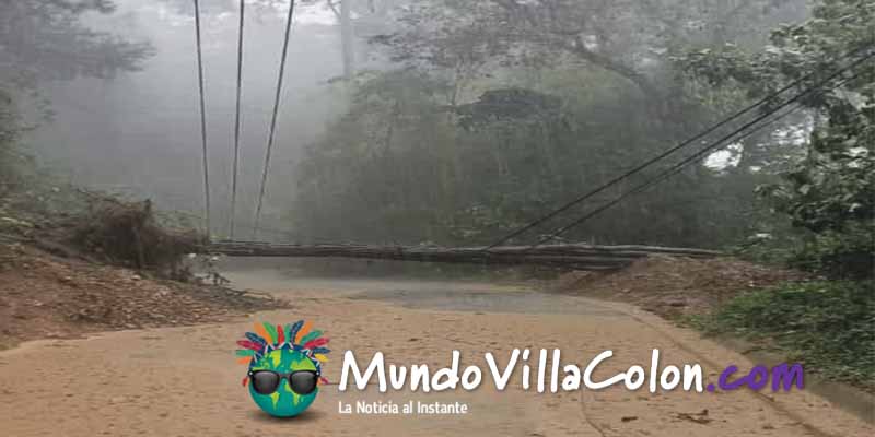Precaución, producto de la caída del árbol varios cables del tendido eléctrico también están sobre la vía, cerca de la escuela nueva de Quitirrisí.