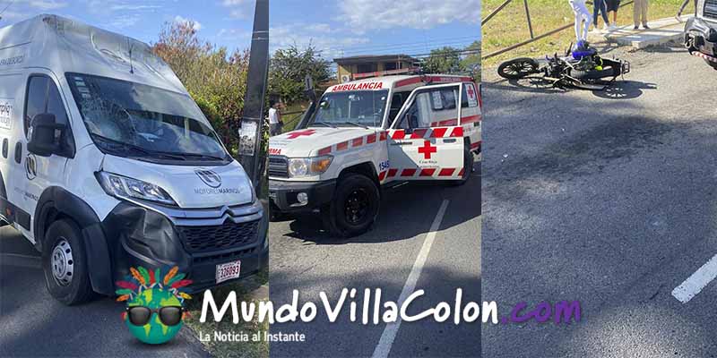 La colisión pasadas las 2:45 pm de esta tarde entre un vehículo liviano y una motocicleta en la esquina frente a la Mutual en Ciudad Colón dejó a l motorizado tendido sobre la vía con golpes varios.