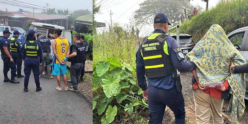 Con una importante presencia de PCD y OIJ se realizaron dos allanamientos en el sector de Junquillo Abajo y La Legua de Puriscal por los delitos de venta de psicotrópicos y amenazas, donde se detienen a una personas de apellido Solano y dos hermanos de apellidos Mora.