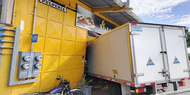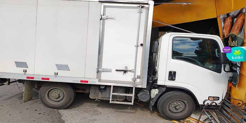 Esta mañana un camión sin el conductor rodó, se subió a la acera y terminó impactando Panadería MyM en Brasil de Mora.