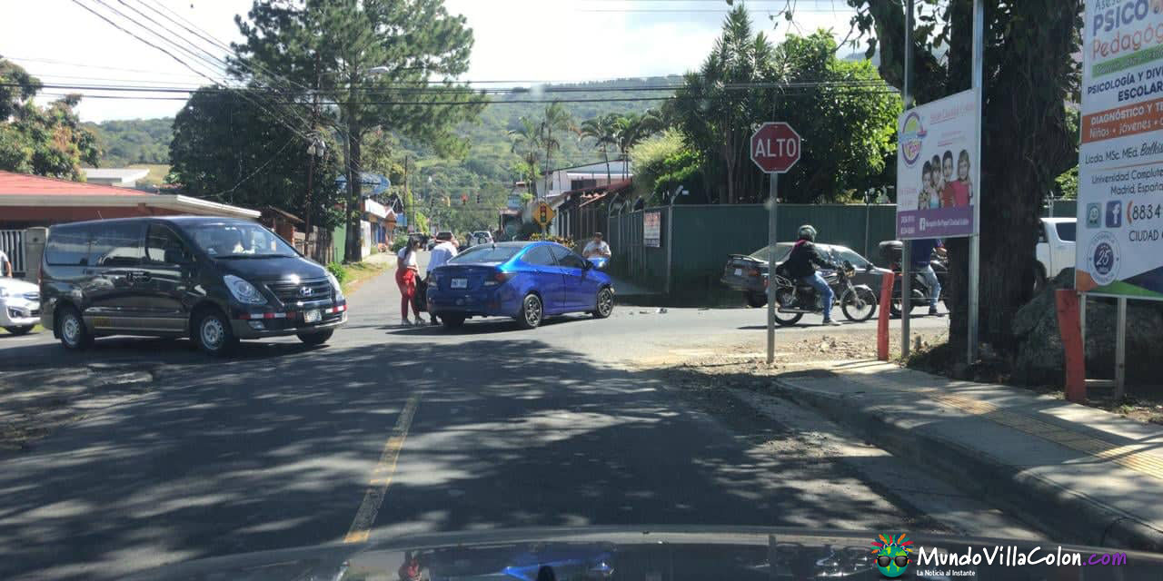 Hace pocos minutos se reportó una colisión entre dos vehículos livianos 100 metros al este de la Mutual en Ciudad Colón.