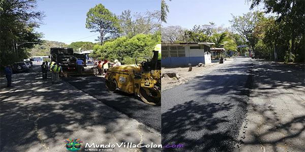 Esta mañana una cuadrilla de la empresa contratada para la colocación de asfalto trabajó en la colocación de la nueva capa asfáltica en la entrada del Liceo Diurno de Ciudad Colón.