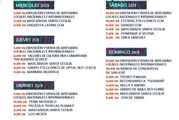 El próximo 20 hasta el 24 de marzo del presente año se estará realizando el séptimo Festival Cultural de Villa en su edición 2019, en este festival habrán conciertos, bailes, mascaradas, folclor, artesanía y productores de la zona, carruceles, cine y varios talleres.