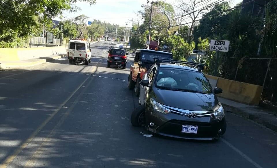 Pasadas las 7:20 am se reportó la colisión de un vehículo liviano contra la estructura del puente sobre el río Pacacua en la entrada del cantón de Mora.