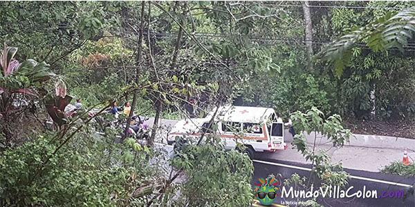 Pasadas las 3:30 pm se reportó la caída de un vehículo liviano a un guindo en el sector del Alto de Quitirrisí en la carretera que comunica Mora con Puriscal.