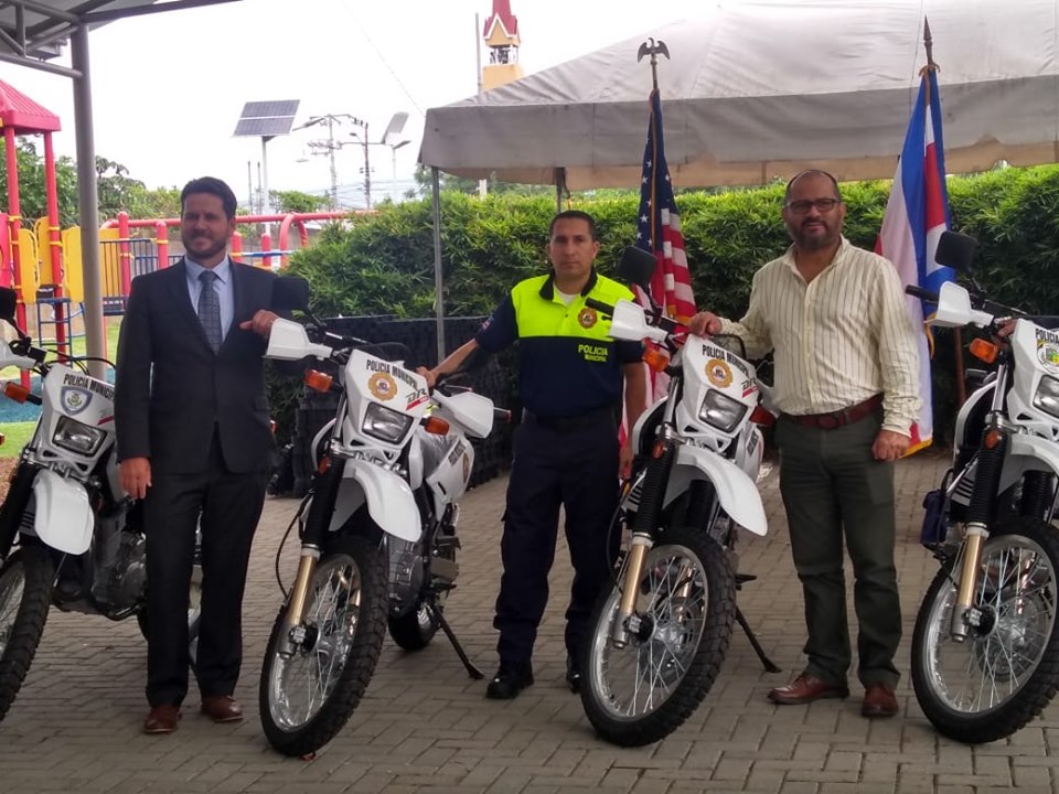 Gracias a la buena gestión del actual alcalde Mora, Gilberto Monge, la Municipalidad recibió dos nuevas motocicletas por parte de la oficina antinarcóticos de la Embajada Norteamericana.