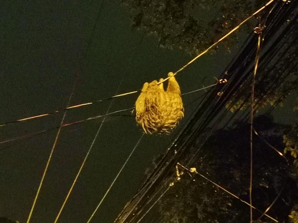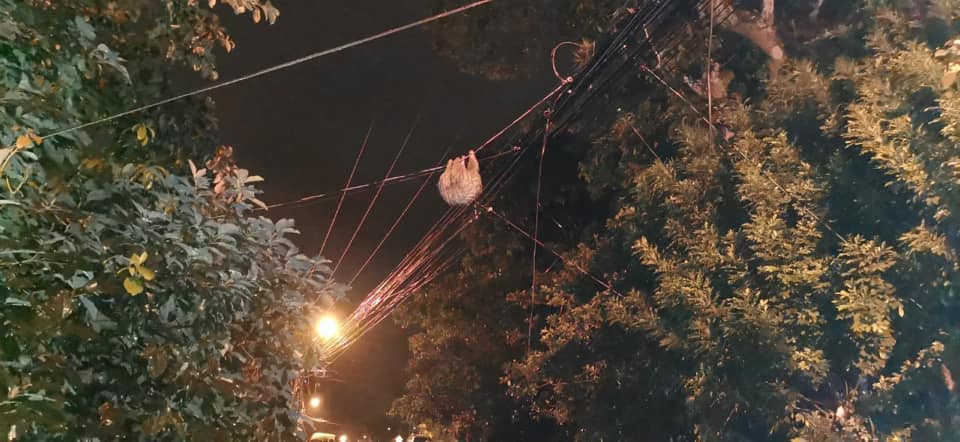 La Unidad M-82 rescata en estos momentos un Oso Perezoso que se encontró sobre las líneas primarias en el sector de Ciudad Colón.