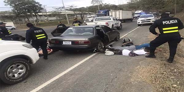 Los sospechosos intentaron darse a la fuga en un vehículo Nissan color verde, el cual se le da seguimiento con cierres de carretera y en coordinación con oficiales de Alajuela.