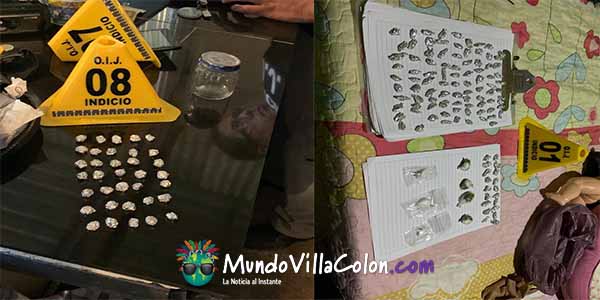 Los investigadores del OIJ de Puriscal, realizaron varias diligencias policiales, logrando corroborar el desarrollo de dicha actividad ilícita, por lo que al ser las 6:00 de esta mañana, allanaron dos casa en la localidad de Guayabo de Mora, donde además de detener a los sospechosos han decomisado 143 piedras de crack, droga tipo marihuana, dinero en efectivo, teléfonos celulares y un arma de fuego tipo rifle.